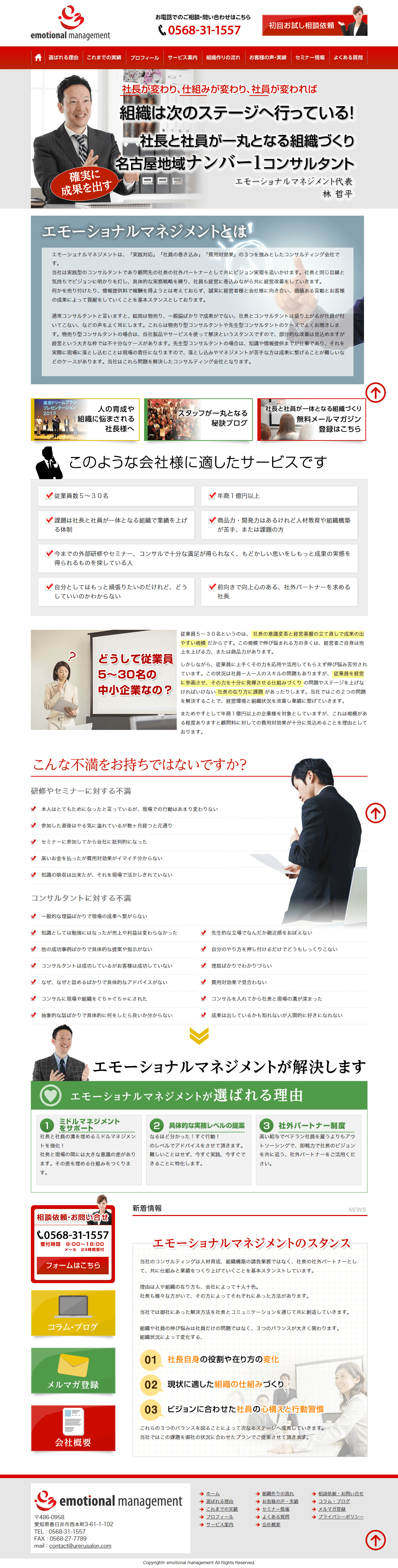 名古屋、岐阜で活躍されている組織、社員教育、人材育成のコンサルタント エモーショナルマネジメント様のホームページを制作させていただきました。