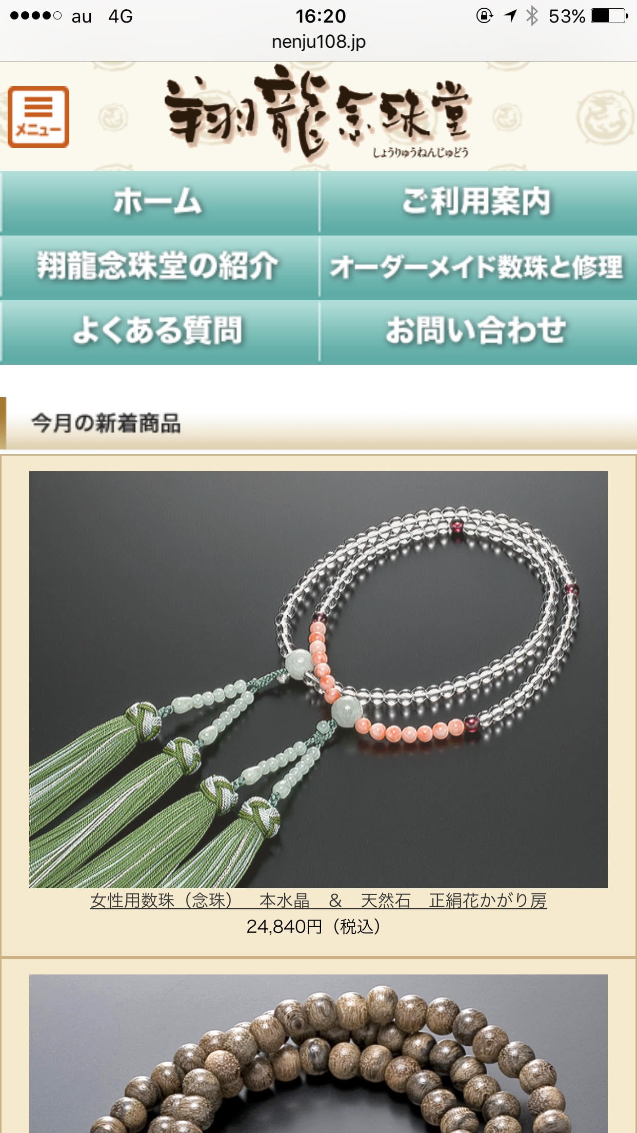 数珠・念珠の通信販売オンラインショップ翔龍念珠堂様のホームページのスマホ対応を実施させていただきました。